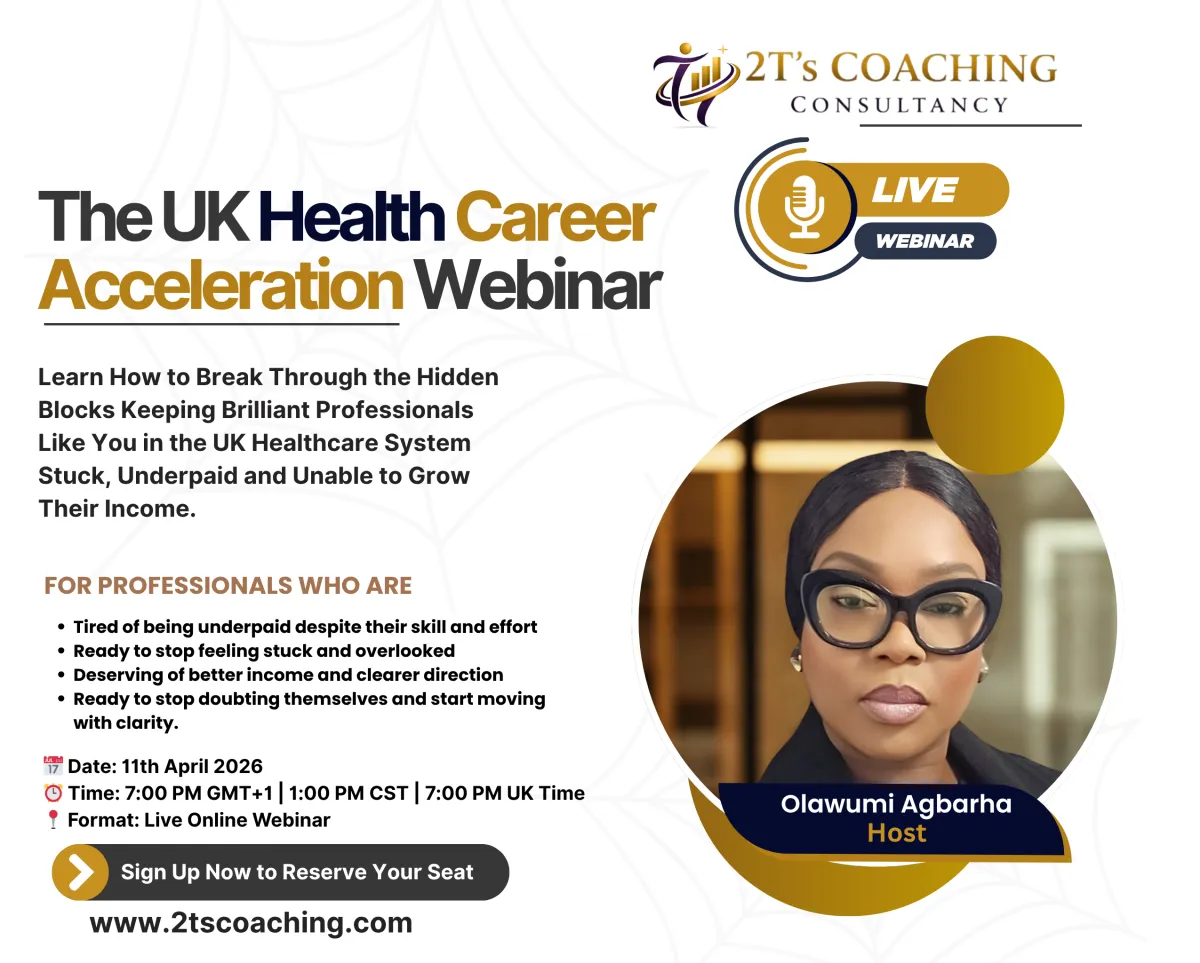 2T’s Coaching Consultancy helps UK healthcare professionals gain clarity, confidence, and strategic direction to advance their careers, increase income, and position themselves for promotion within the UK healthcare system.